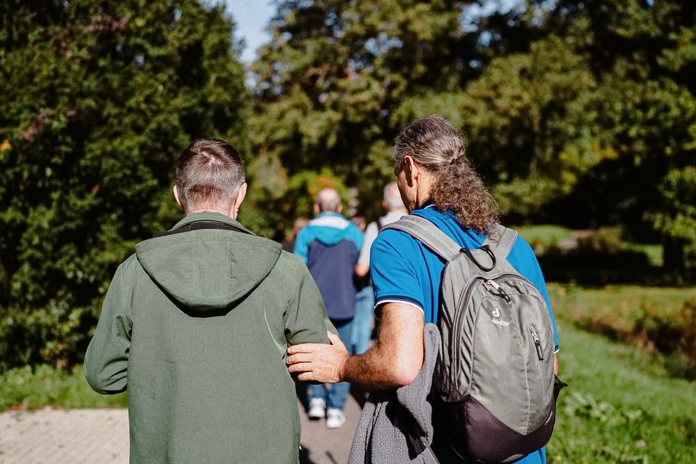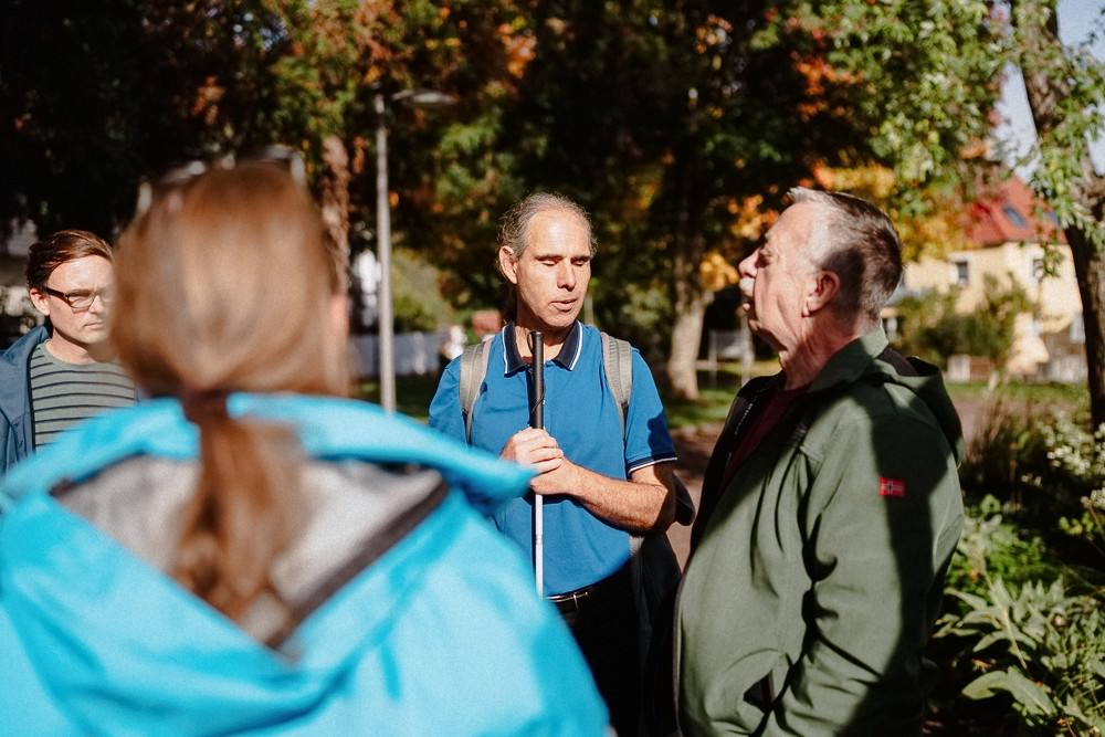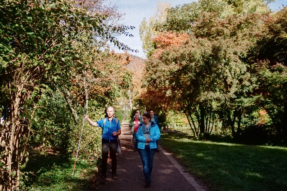 In the Markwardanlage park, he also makes good progress on his own—apart from the occasional detour into a driveway. “I don’t mind if I end up in a driveway. I can find my way out again.” However, not all visually impaired people feel the same way. “Many don’t dare to go out on their own. They’re afraid of losing their bearings.” In his opinion, better route descriptions that are also accessible to blind people, especially at intersections, would therefore be a good thing. And: “bushes that protrude into the path at eye level are very dangerous.” He grabs the branch of a yew tree that had hit him in the face. Christina and Christian listen attentively, asking questions again and again. After all, the aim is to continue promoting fully accessible tourism in the Southern Palatinate.