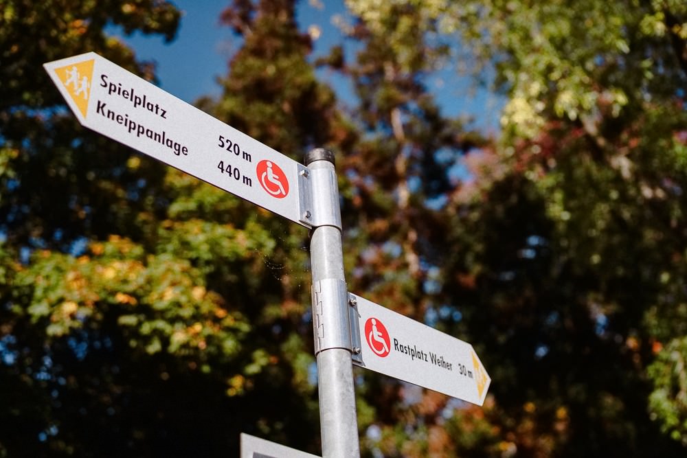 According to the certificate, the Markwardanlage is also considered partially accessible for people with visual impairments. Ralf tests if he can find his way without help. The hiker, who lives in Mannheim, has just returned from a tour of the Zugspitze mountain. One and a half kilometres and a maximum gradient of six per cent on wide and partly asphalted paths seem like a walk in the park in comparison.