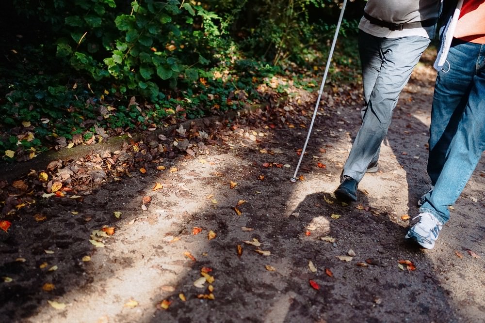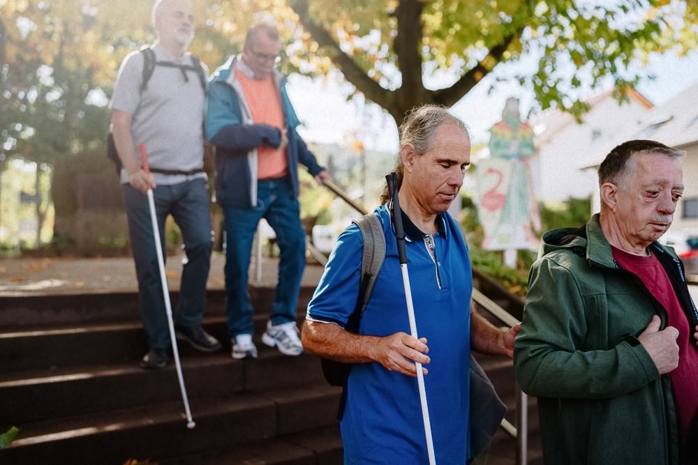 Ralf hikes almost every week and, as the inclusion officer of the Schwarzwaldverein Pfalz Weitsicht (Black Forest Association Palatinate Foresighted), he offers several hiking weeks a year for both sighted people and those with visual impairments in the region. He hopes this will help break down barriers. When he started looking for hiking groups that would take a blind hiker with them 25 years ago, almost all of them turned him down. “Some people think that you have to lead a blind person by both hands or that we are very slow and can’t walk on narrow paths at all,” he says. But Ralf can walk on almost any path and only touches his companion lightly on the arm. “On hikes, it’s usually the sighted people who fall, not the blind,” he adds.