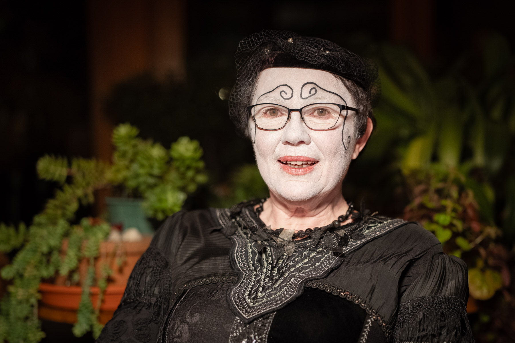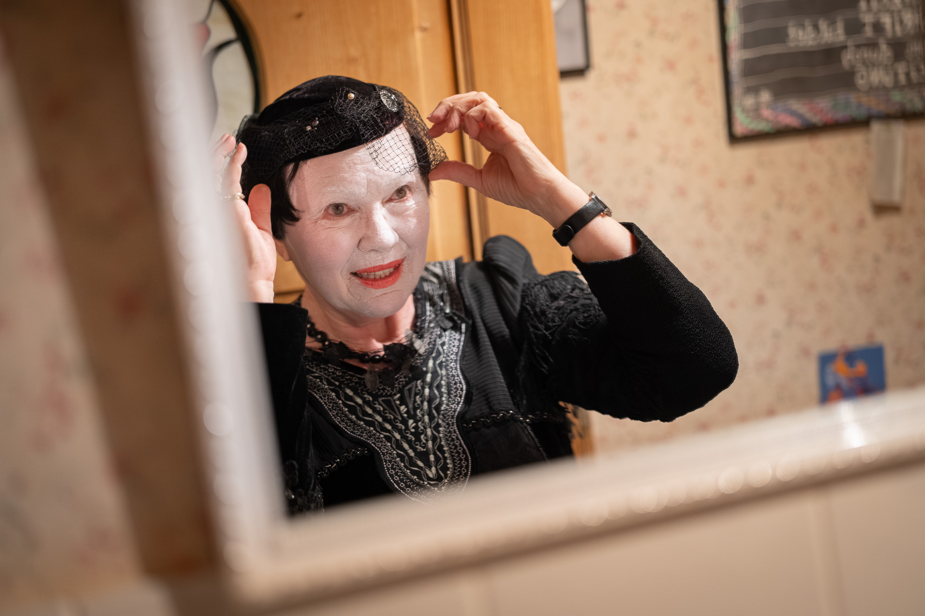 Eine ideale Zeit also, um auf sagenhafte Streifzüge zu gehen. Für Keßler-Schül beginnen die Vorbereitungen dafür schon einige Stunden zuvor, in ihrem Haus im Norden Heppenheims. Über die Jahre hat sie einen kleinen Fundus zusammengetragen. Kleider für verschiedene Jahreszeiten, schwarze Stiefel, mehrere Hüte. Gut 30 Führerinnen und Führer gibt es derzeit, manche gewanden sich mittelalterlich, andere eher mystisch. „Alle suchen sich ihr Kostüm selbst aus.“ Keßler-Schül schlüpft immer in die gleiche Rolle. Sie zieht ihr Kleid an, ein langes, schwarzes Gewand mit Stickereien und Bordüre. Dann schminkt sie ihr Gesicht weiß und malt schwarze, geschwungene Linien um ihre Augen. Eine bestimmte Figur stellt sie nicht dar. „Ich mag einfach den Kontrast zwischen der Dunkelheit, meinem schwarzen Kleid und dem weißen Gesicht.“